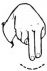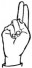 На ћирилици написано БЛАЖА ДУЊИЋ састоји се из 10 слова [?]. Исписано ћириличном једноручном азбуком за глувонеме: